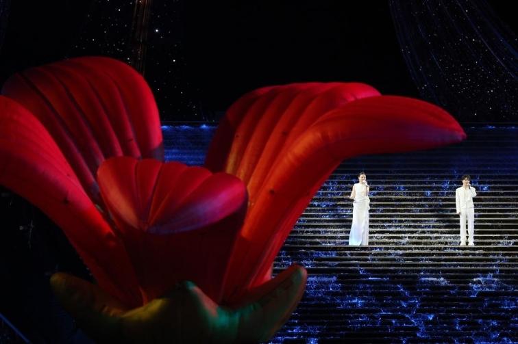 当震撼的火焰点亮夜空,开幕式并未在热烈中结束。相反,一首清澈如泉的歌曲,让数万人的体育场瞬间沉静下来。