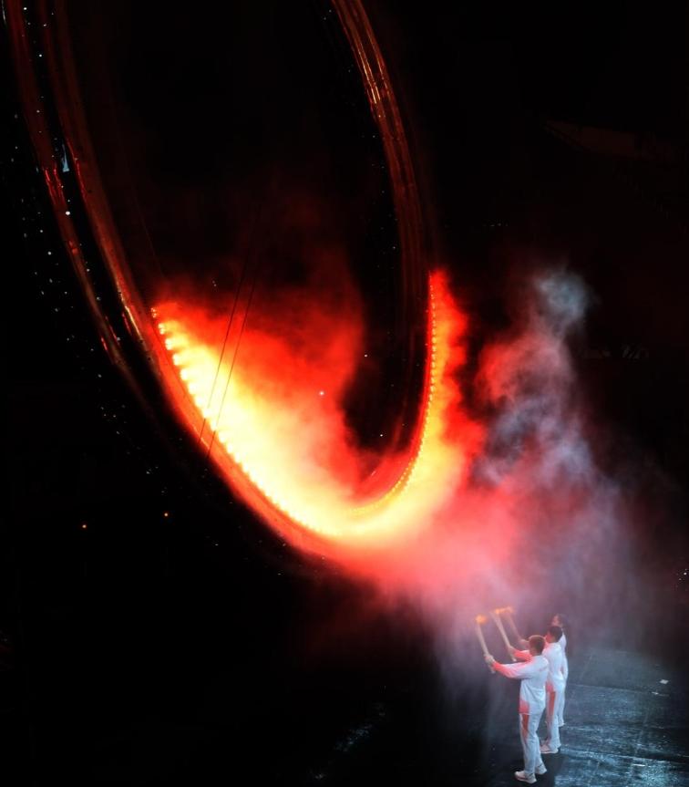 这意味着,火炬塔的“燃烧”效果,需要根据天气、风力实时调整水雾量和灯光亮度,其难度远超想象。“有的时候雾大了不像火,小了又没气势”,郎昆导演补充道,“我们用半年时间反复试验,才终于找到了那个最完美的比例。”