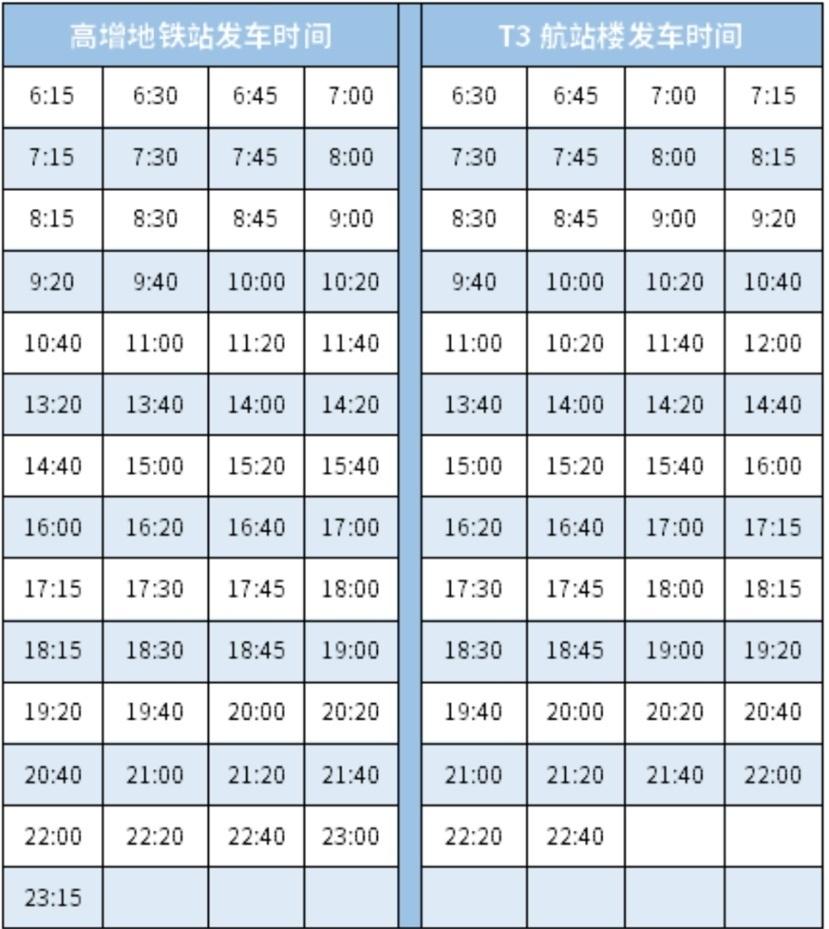 高增地铁站(B口)↔T3航站楼(单程约15分钟)