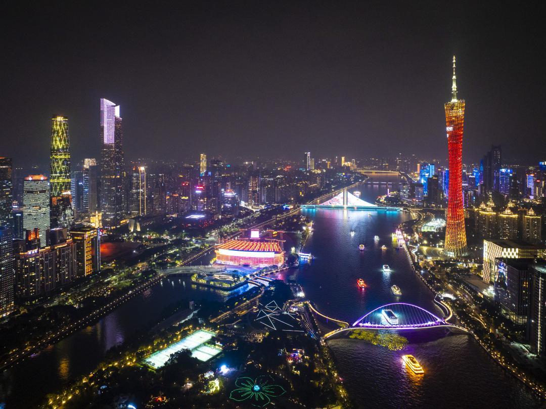 夜色低垂,珠江亮了。夜色中的广州,如同一幅流动的岭南彩墨卷。