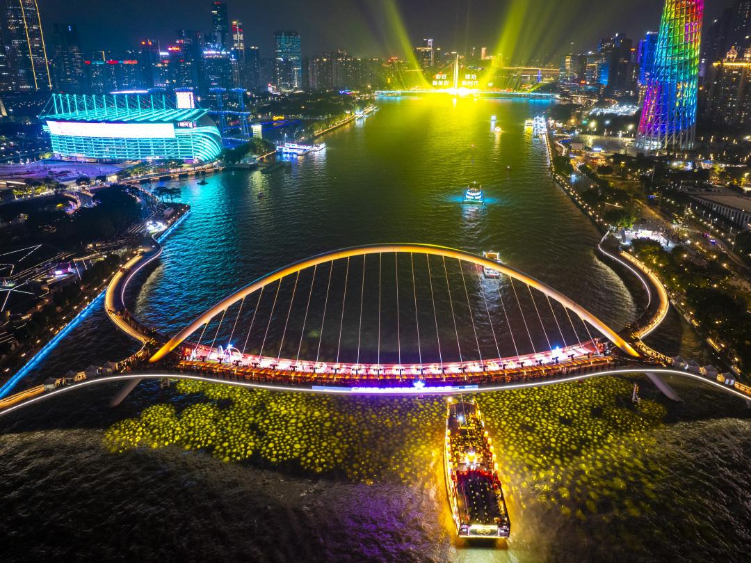 2023年4月,法国总统马克龙在社交媒体发布猎德大桥灯光秀视频,以中法双语致谢广州;中国外交部发言人多次转发的广州夜景,将广州的光影魅力持续推向国际舞台。