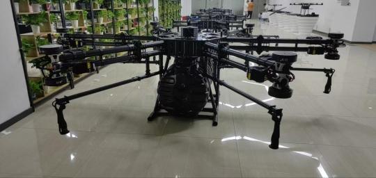 实现大载重,材料是关键。来到公司位于黄埔区华南新材料创新园的总部,记者看到多个全身黝黑的“庞然大物”,这些无人机一个个“腰大十围”,8个旋翼和机身几乎纯黑,仅在部件的关键连接处采用太空铝等极少轻质、坚硬金属。