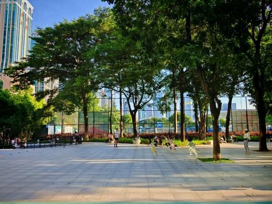 不止于此,天河体育中心还拆除了阻隔视线的围栏,在东北与西北街角“生长”出两处街角公园。960平方米的林下空间,不再是匆匆穿行的过道,而成为老人晨练、亲子嬉戏、市民小憩的温馨角落,自然融入社区日常。