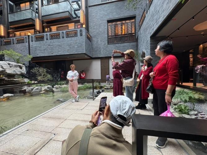 日光中庭的细叶榕还在,但园林造景更靓了。大榕树下叹早茶,几十年间的光阴轮转,不变的是老街坊饮早茶的人情味与烟火气。排队的人群中,有街坊回忆以前里面的装修和氛围,有街坊讲起闭店后饮早茶的其他选择,还有街坊倾情分享退休后的生活……尽管互不相识,大家像熟人一样热络,因为多年来帮衬一家老店而生出情谊。不少街坊一家老小围坐一桌,闲话家常,一些街坊同老友记在园林拍照打卡,难掩兴奋。