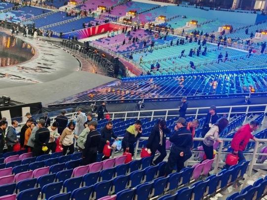 十五运会开幕式演练散场时,观众与工作人员主动收集身边的垃圾,有序带离现场。开幕式前5次彩排,演职人员和观众多达十余万人,自始至终较好地践行了无废理念。人群散去,观众区未见一片垃圾,整洁如新。这份自觉,不仅是广州市民高度文明素养的表现,更是广州践行“无废全运”行动的生动写照。