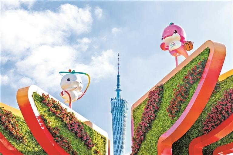 在广州,第32届广州园林博览会秋季场也将全运元素融入一草一木。广州市林业和园林科学研究院工程中心副主任、高级工程师侯永峰表示,坐落于广州城市客厅花城广场的《广·木棉》艺术装置是最具全运特色的作品之一。它紧扣十五运会主题,采用15片线条利落的“广”字构件,巧妙拼出一朵巨型的广州市花——木棉花;十五运会吉祥物“喜洋洋”“乐融融”矗立在装置顶端,以艺术绿雕的形式展现全运会的活力。