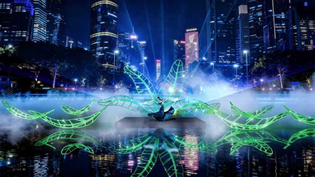 十五运开幕式节目《咏春踏浪》中令人印象深刻的悬浮芭蕉叶,如今以灯光艺术装置《蕉雨水色》的形式,落户于灯光节星光大道展区。该作品灵感源自中国美协副主席、花鸟画名家林蓝的国画原作,经广州美术学院团队进行立体化与光电改造,精准捕捉雨后芭蕉垂露的自然形态。届时,它将与璀璨的双塔夜景、粼粼江波和城市背景音乐相融,为广州的夜色添上一笔优雅而静谧的岭南诗意。