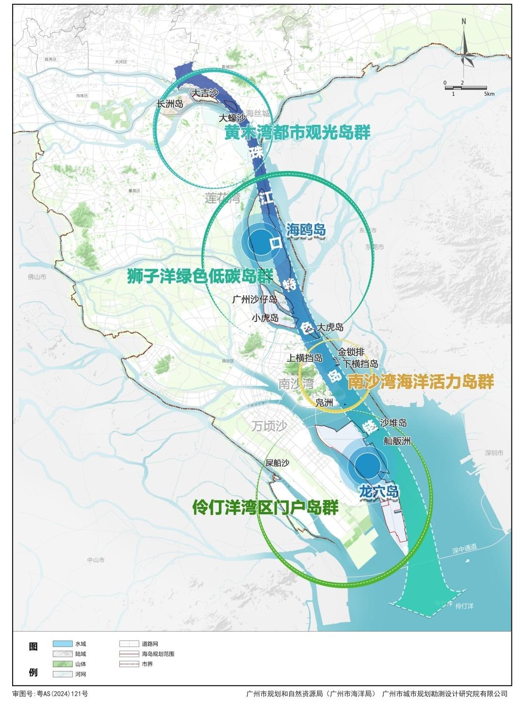 “一链四群”:加强功能整合,串联各个海岛,构建珠江口特色岛链,提升海岛生态系统服务功能;通过协同联动和统筹开发的方式,打造四个特色岛群:黄木湾都市观光岛群、狮子洋绿色低碳岛群、南沙湾文化活力岛群和伶仃洋湾区门户岛群。