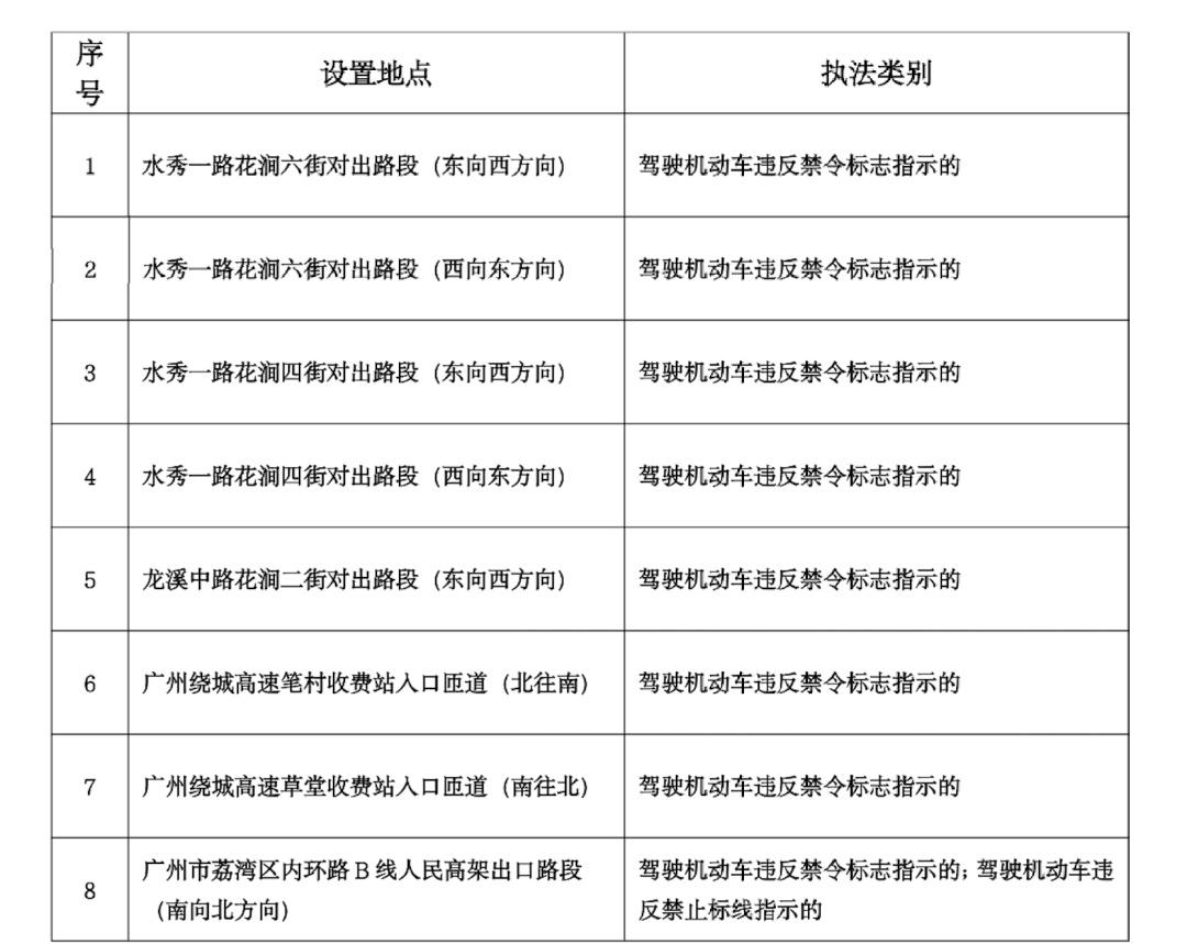 记者从公安机关交通管理部门获悉,为进一步加强道路交通安全管理,规范道路交通通行秩序,保障人民群众的生命财产安全,广州市公安局交通管理支队新增32套交通技术监控设备。交管部门将于2025年11月19日起将依法对有交通违法行为的车辆进行拍摄取证并予以执法,请广大驾驶人守法出行、安全驾驶。