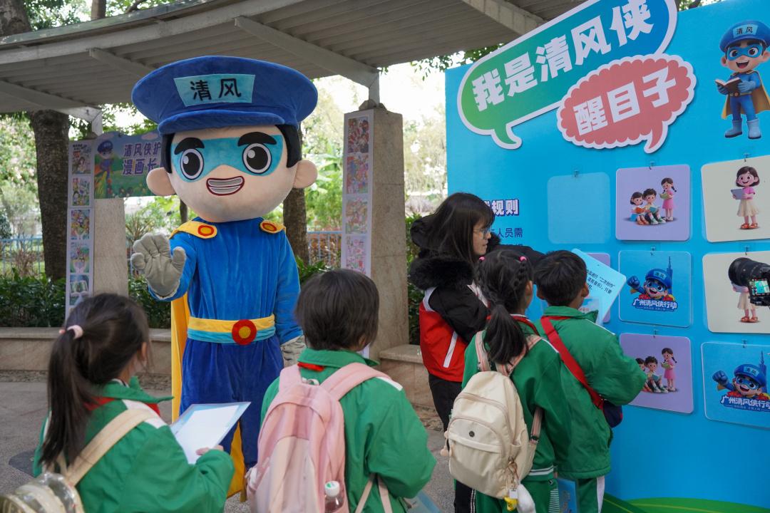 近日,“非遗润童心 清风护苗行”——2025广州“护苗·绿书签行动”之“清风侠文明行”在荔湾儿童公园正式启幕。本次活动由广州市“扫黄打非”办公室、广州市版权保护中心指导,荔湾区委宣传部等主办,信息时报社承办,以非遗赋能、志愿聚力、游园传情、巡游扩面为核心,将“扫黄打非·护苗”理念融入多元场景,全方位为未成年人健康成长保驾护航。