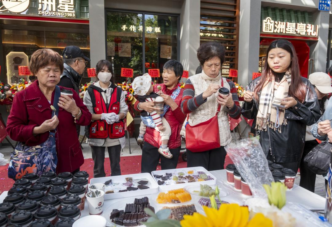“洲星的马蹄糕我们吃了几十年了,品质一直保持水准,就连过年过节,我们也大箱大箱买来送亲戚朋友,大家都很喜欢。”住在光塔街的街坊黄女士和朋友现场开心扫货,“以前我们经常专程去白云区江高镇购买,现在门店开到家门口了,真是太开心了。”看到店里还推出多款新鲜现做的马蹄糖水、饮品等,黄女士表示“没想到还有这么多吃法”,要慢慢来“都品尝一遍”。