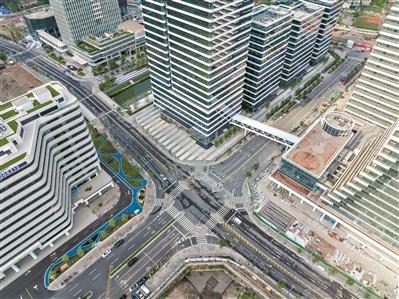 海龙围科创区首个完成封顶的项目侨银大厦在2021年年初封顶,而白鹤沙、龙溪大道两个地块的市政配套工程分别在2020年8月、9月启动。彭军介绍,从2020年9月开建,到2024年6月最后一条路完工,他们克服了产业楼宇、配套道路同步交叉施工的困难,在龙溪大道地块新建7条市政道路,总长3.3公里。“‘四纵三横’织起园区路网,能满足园区企业货物运输、员工通勤以及商务往来需求,为周边大参林运营中心、广州宏信悦谷等项目,以及广州市激光与增材制造产业园等载体提供顺畅的交通保障,同时有效缓解龙溪大道的拥堵。”他表示。