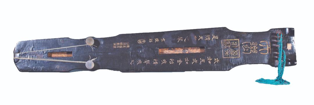 湖北省枣阳市吴店镇,先秦时期,周王朝在这一带分封了不少姬姓诸侯国,其中曾国(即随国)地位突出。这张珍贵的古琴,就是在2016年出土于枣阳郭家庙的一座曾国墓葬之中。被发现时,琴保存完整,长约92厘米,宽约35厘米,通体形态看上去类似高髻人形,箱体整木斫成,髹黑漆,琴弦孔与龙龈有明显的过弦痕迹,说明它是一件实用器。在同一座墓葬中,还发现了一张长180厘米,宽34厘米的瑟。这种组合在春秋早期的墓葬中前所未见,可以说是所知最早的“琴瑟和鸣”。