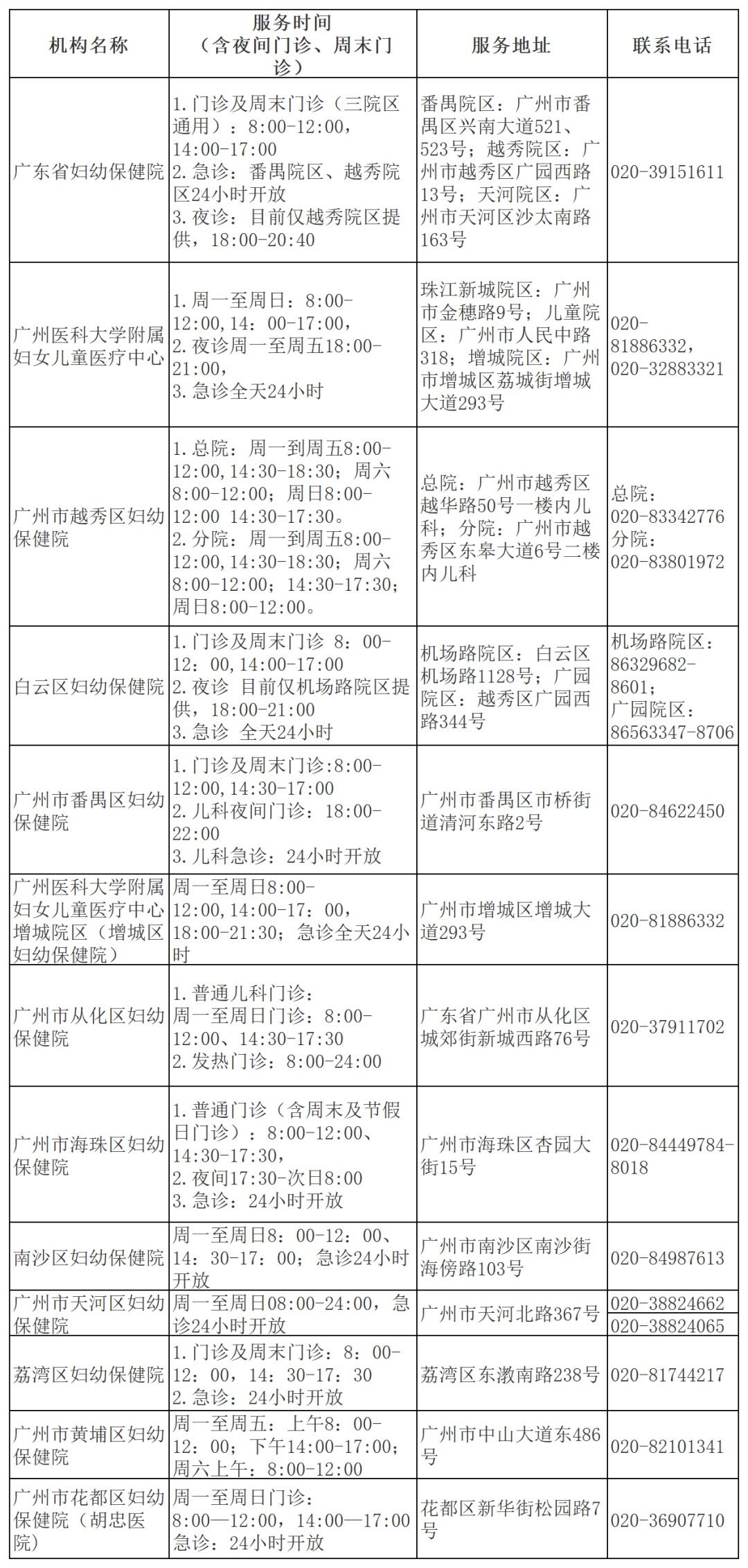 广州市提供儿科诊疗服务的妇幼保健机构名单