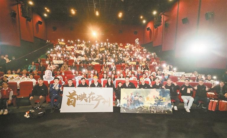 《英雄三元里》主创和观众合影。 广州日报全媒体记者庄小龙 摄