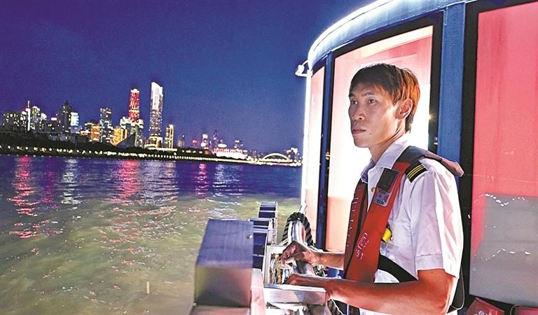 每当夜幕降临,珠江两岸亮起灯火,“小蛮腰”在夜色中格外耀眼。杨为斌站在甲板上,看着游客举着手机拍照,听着他们感叹“珠江夜景真美”,心里满是暖意。“我从小就跟水打交道,以前是跳水池,现在是游珠江,能让大家安心赏景,这份工作就很有意义。”