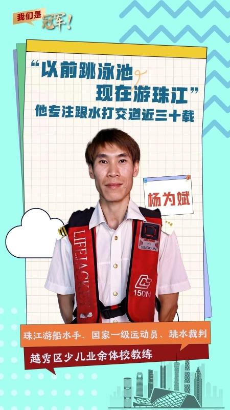 2013年,又一次受伤改变了杨为斌的人生轨迹,伤病严重时腰疼得站不直,他不得不离开练了十几年的跳台。凭着对水的熟悉,2015年1月,他经朋友介绍,成了珠江游船上的一名水手。
