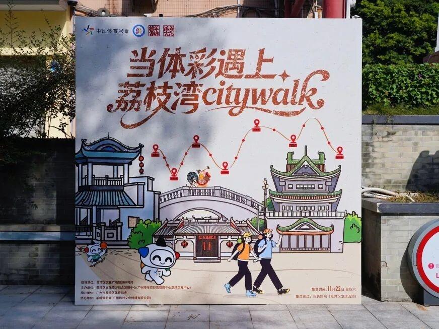 此外,即日起至12月14日的每个周末,一场别开生面的“当体彩遇上CityWalk”系列活动在荔湾区精彩呈现。活动创新性地将体育彩票公益宣传与城市徒步文化体验相结合,精心设计的路线串联起梁家祠、文塔、泮溪酒家、西关大屋、李小龙祖居、粤剧艺术博物馆等多个文化地标,让参与者在健步走的过程中,深度领略荔湾丰富的历史文化魅力。