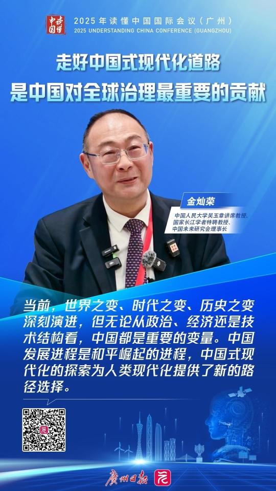 12月1日,读懂中国国际会议(广州)开幕。中国人民大学吴玉章讲席教授、国家长江学者特聘教授、中国未来研究会理事长金灿荣在现场接受采访,就全球治理体系与中国式现代化等议题分享见解。
