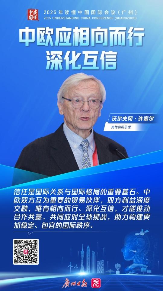 作为“读懂中国”的老朋友,奥地利前总理沃尔夫冈·许塞尔近年几乎每年与会,既持续追踪中国发展进程,也为中欧合作对话贡献见解。