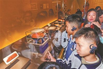 12月3日下午,广东省博物馆(以下简称“粤博”)将“听见粤博——口述影像专场”活动“搬”到“髹漆与共——清代广作外销漆器”展览现场。广州市启明学校的视障学生用指尖感知漆艺的肌理,以聆听的方式邂逅千年文明的华彩。