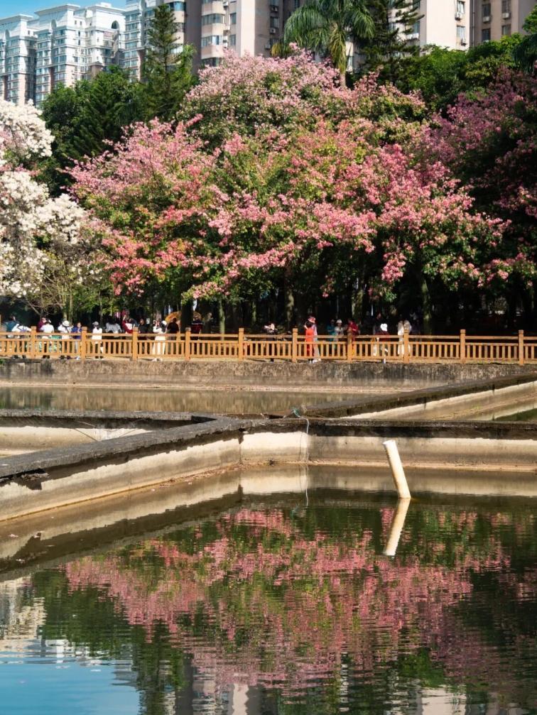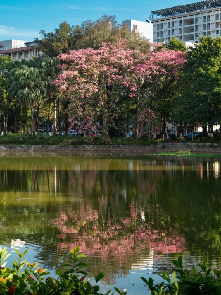 除了这处有名的白花异木棉外,华师校园内还集中种植了百余株粉色异木棉,也值得一并观赏。