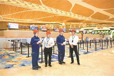 白云机场新航站楼投产前,广州供电局工作人员跟机场工作人员讨论机场用电需求,提供全方位的电力保障。广州供电局供图
