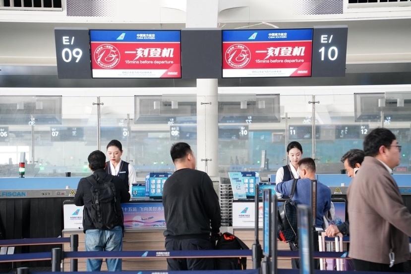 需要关注的是,对于有托运行李的旅客,已开通“一刻登机”服务航线的托运行李办理时间,不晚于航班计划起飞前30分钟。对于轮椅旅客、行动不便旅客、首次乘机旅客、无成人陪伴儿童、孕妇、携婴儿/儿童出行旅客等有特殊服务需求的群体,建议预留足够的乘机时间,南航也为特殊旅客群体设置了服务专区,减少旅客等候时间,提升服务体验。
