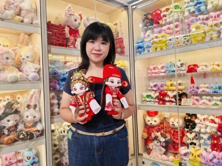 这些年来,何凤婷在戏服制作技艺非遗传承的道路上,从未停止过探索的步伐。例如用戏服制作技艺为玩偶制作娃衣,今年她更结合年轻人喜欢的棉花娃娃,制作粤剧棉花娃娃及戏服娃衣,在“跨圈探索”中为技艺传承注入新活力。