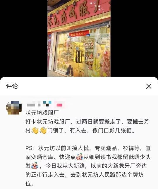 状元坊戏服厂将搬迁。