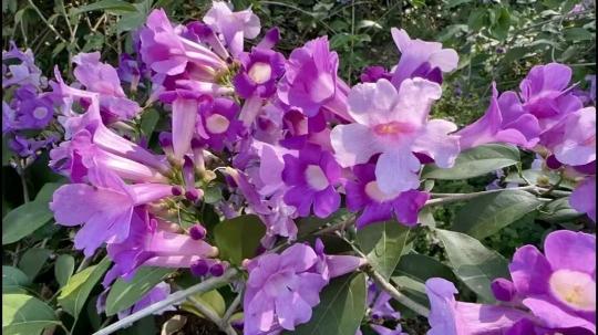 近日,华南国家植物园内迎来了一场紫色浪漫盛宴——蒜香藤正值盛花期,层层叠叠的紫色花朵如瀑布般倾泻而下,形成了一片片壮观的花瀑景观,为秋日的园区增添了热烈而温柔的气息。