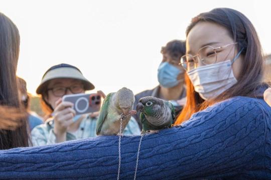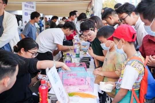 草坪上,不少小朋友正仔细端详刚领到的仓鼠。“华农研学-小农宝”摊位工作人员、华农人文与法学学院2023级学生陈冰霓分享道:“我们希望能通过科学饲养仓鼠的过程,培养小朋友们对宠物的责任心,形成对生命负责的态度。”