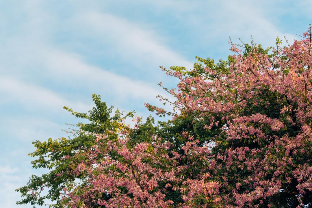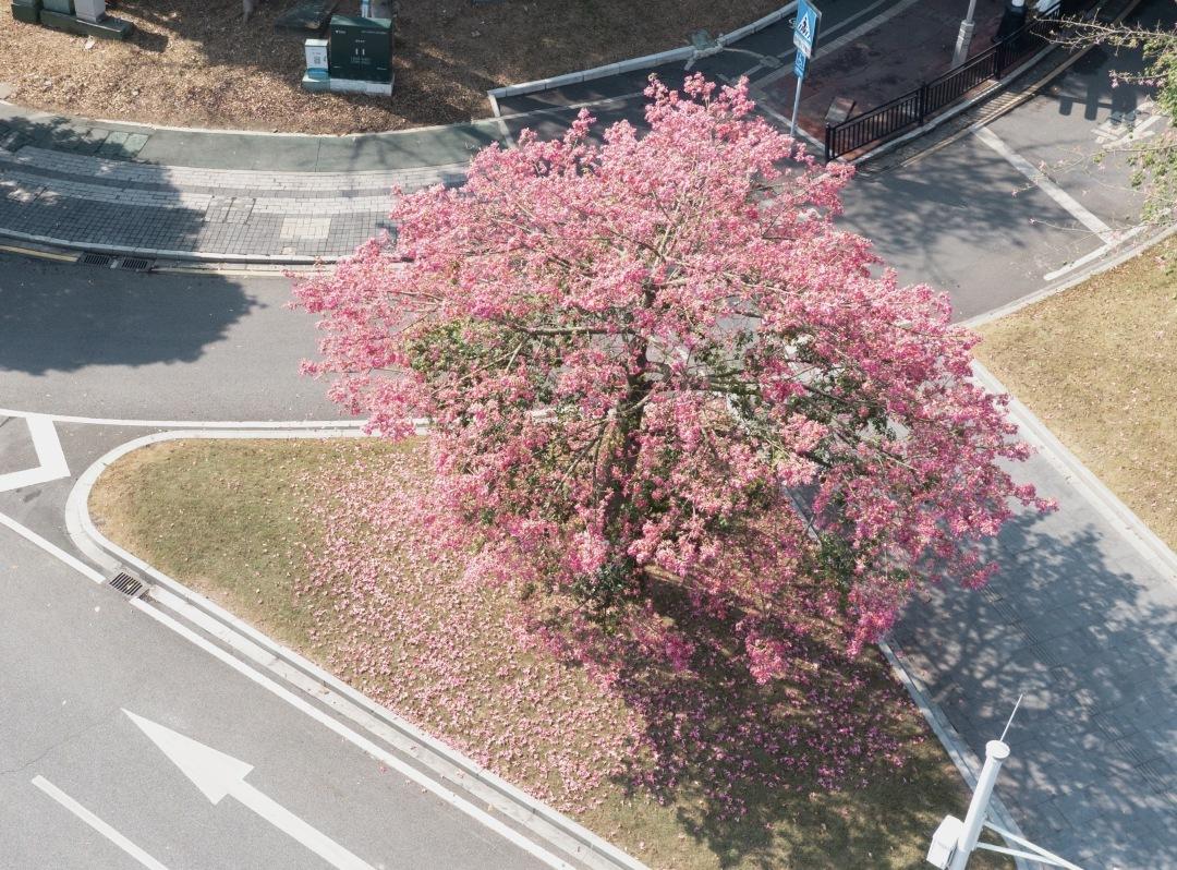 志诚大道中央绿化带和道路侧有亮眼的 “粉色狂欢”,风一吹便似千万只粉蝶振翅,簌簌落下的花雨。