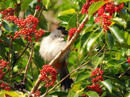 铁冬青树上的白喉红臀鹎(红尘外摄)