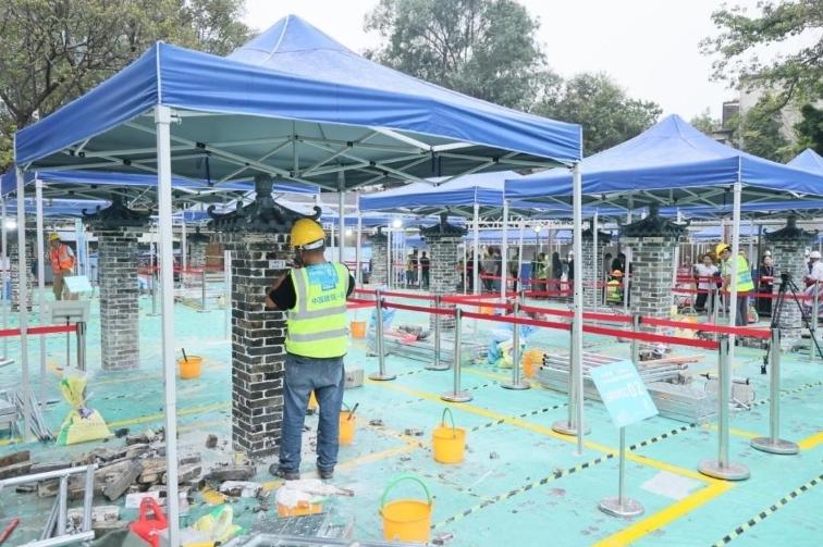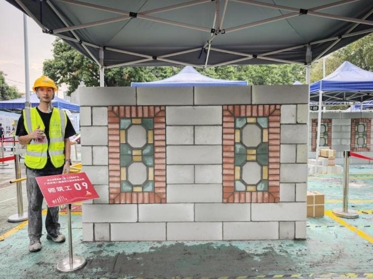 赛事特别选用百年旧青砖作为材料,要求选手运用青砖石灰膏砌筑工艺,完成三隅独立柱砌筑加单层柱头亭安装,精准达到“修旧如旧”的古建修缮标准。从旧青砖淋水浸润时长的细致把控,到壳灰配比的毫厘精准,再到砖缝拼接的严丝合缝,黄志庆将岭南建筑“冬暖夏凉、防水防脱”的工艺精髓展现得淋漓尽致。这位曾参与宝墨园清代风格复原、余荫山房修缮的古建传人,用实际行动诠释了匠人初心的坚守与传承。