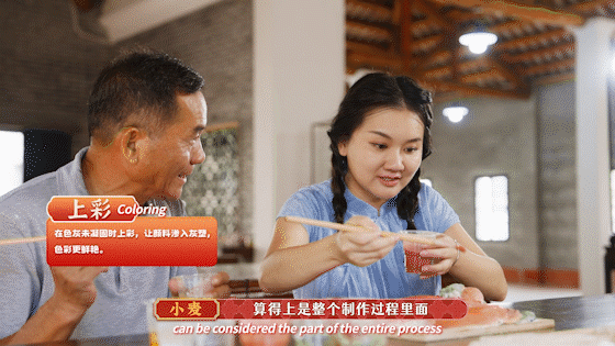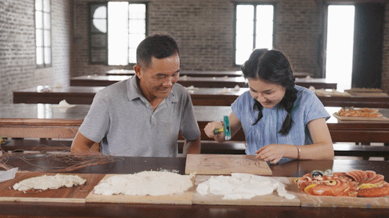 随后,师傅一一展示糯米粉、盐、红糖等制灰“好物”。“莫非要烹饪一顿‘黑暗料理’?”小麦不禁生疑。“加入糯米粉,可让灰变柔软、强度变大,加入红糖可让灰的表面硬化,无惧雨水冲刷。”师傅解释。原来,岭南人不仅吃得尽兴,还将柴米油盐“用”到房檐上,充满生活智慧。