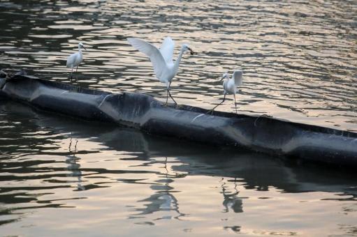 在二沙岛西侧与沿江东路交界的珠江水面有一群白鹭。(资料图片)