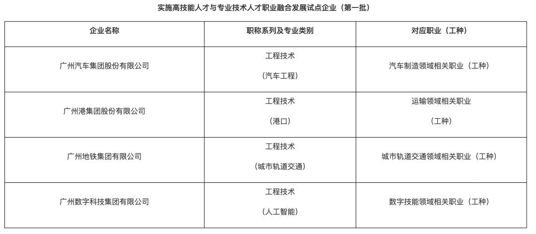 《方案》提出,广州将在具备专业技术人员职称自主评审权和职业技能等级认定评价资质的大型企业试点,开展技能人才与专业技术人才职业融合发展工作;在广州市市(区)属企业一线从事技能和专业技术工作的复合型人才中试行“以赛代评”。