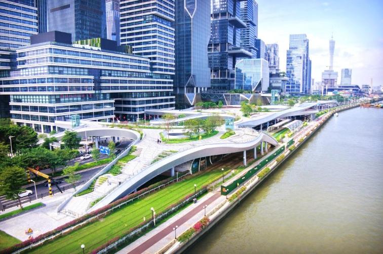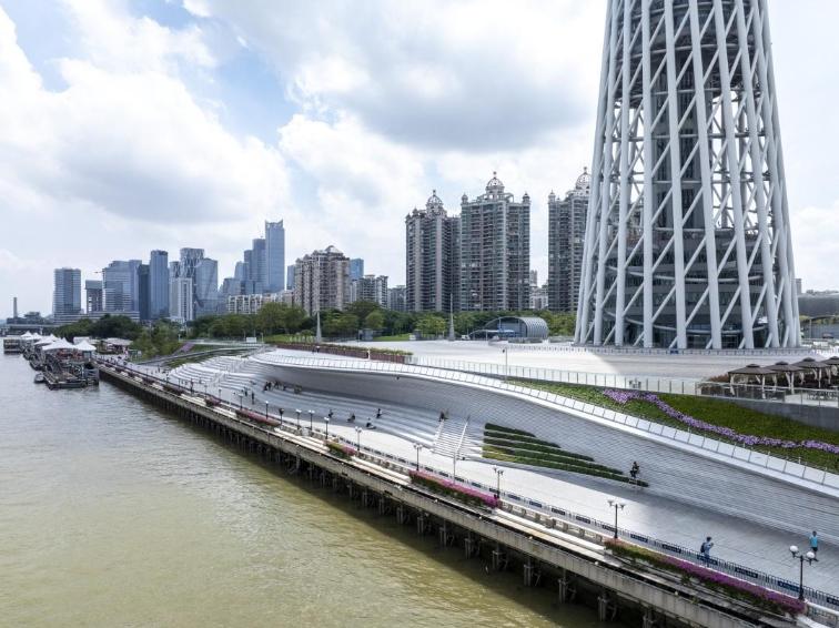 广州塔滨水大台阶以“珠水涟漪”为设计灵感,曲线优美呼应广州塔的挺拔身姿;黄埔涌桥以“榕冠植根岭南”为设计意象,将岭南风情融入现代建筑,不仅畅通了珠江南岸沿江通行的脉络,更一跃成为市民休闲休憩、拍照打卡的网红新地标。