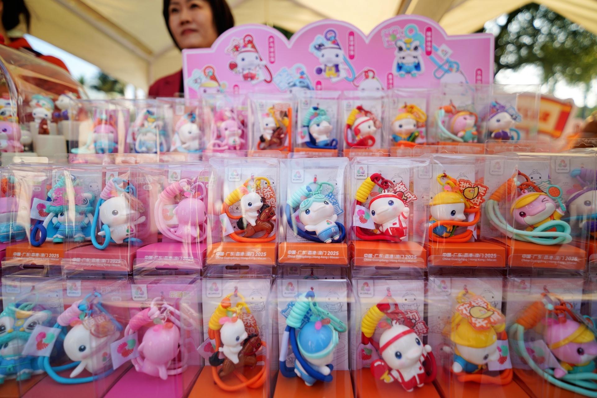 从大湾鸡邮筒到主题展览,从元气满满的盲盒到“体育+”与“文旅+”的深度融合……中国邮政集团有限公司广州市分公司、广州大剧院管理有限公司、广州杰森动漫文化有限公司、名创优品(广州)有限责任公司、美高梅(上海)文化旅游发展有限公司、广东金联盟文化发展有限公司、广州市华星演艺有限公司等单位,发布了文创联名、主题艺术展演、特许商品、时尚生活跨界产品等多元内容,涵盖文化、旅游、消费、娱乐等多个领域,让“大湾鸡”从赛事符号真正融入市民生活,成为广州一张鲜活的城市文化名片。广东金联盟文化发展有限公司董事长邬宇峰带来四大系列产品,包括“湾鸡跃马马上有”盲盒&新春礼盒系列、大湾鸡“烟火萌趣”挂饰系列、“鳌福临门”新春祈愿盲盒系列、“湾鸡赤骏”贺岁版毛绒系列。这些产品将在2026年1月18日正式全面上市。