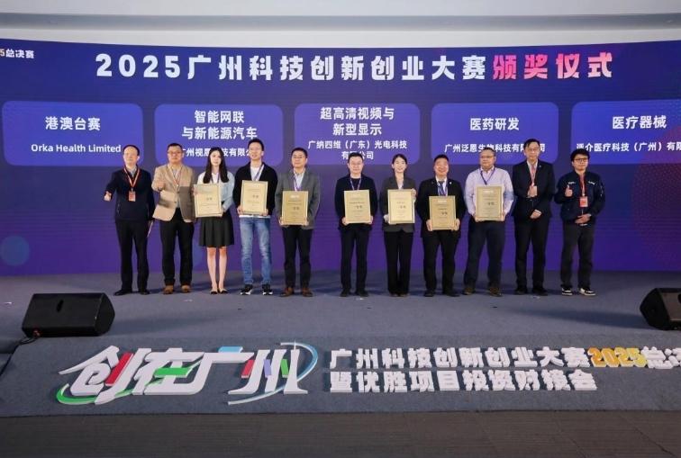 在双创大赛2025总决赛暨INNO+大湾区科创嘉年华现场,智慧轨交先锋广州穗腾数字科技,攻克实体肿瘤免疫治疗难题的泛恩生物科技,以AI重构生命科学仪器的利德健康,用纳米技术生产AI眼镜核心大脑光波导芯片的广纳四维,港澳台赛冠军、用AI重塑听力健康的Orka Health Limited……9家从今年大赛行业赛冠军中精选出来的代表轮番登台,面向投资人进行90秒的电梯演讲。