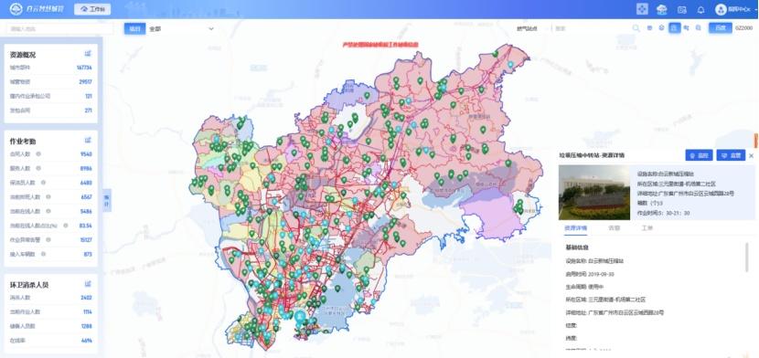 白云智慧城管平台“一图统管”16.8万余个城市部件、2.9万余个城管物资。