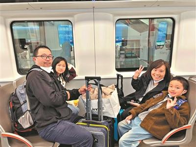 市民曾小姐一家搭22号线去广州南站。