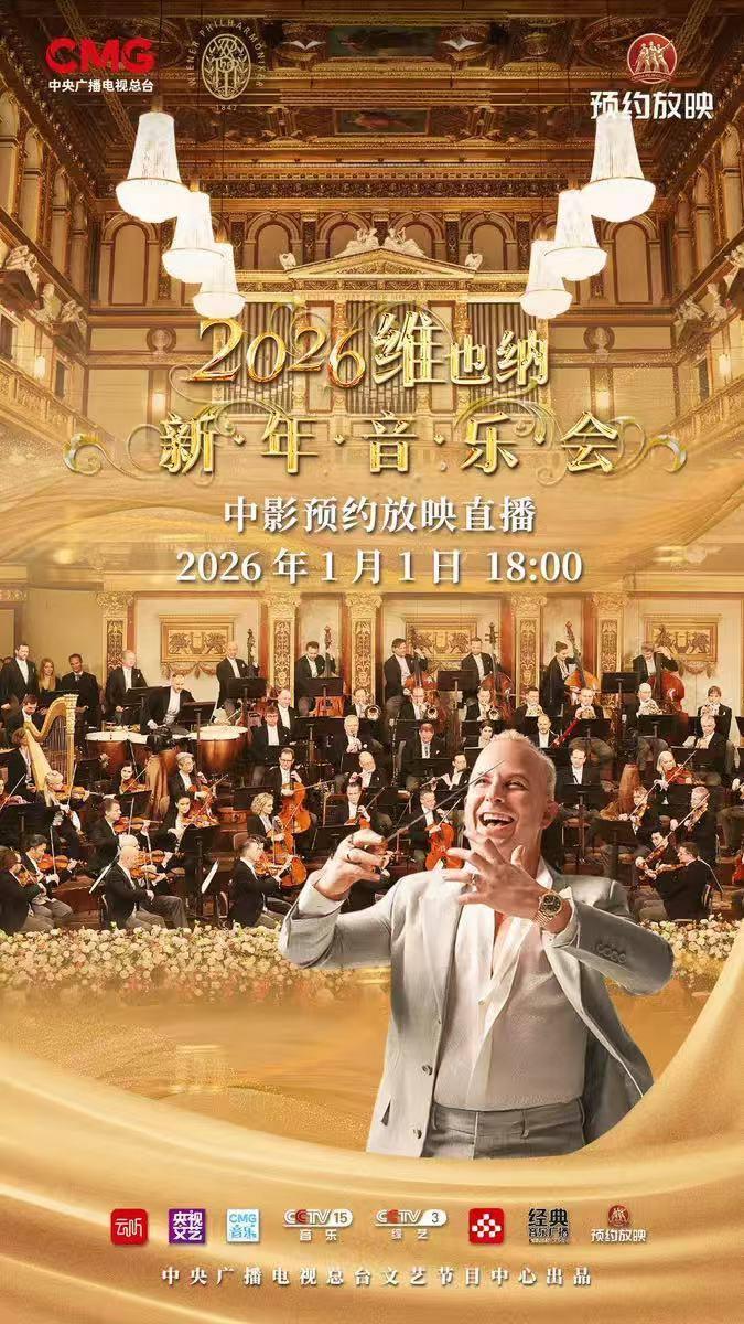 假期走进影院,除了看电影,还能看音乐会!一年一度的维也纳新年音乐会将于2026年1月1日在维也纳金色大厅举行。今年的音乐会由被誉为古典乐坛“时尚先锋”的雅尼克·涅杰-瑟贡执棒。
