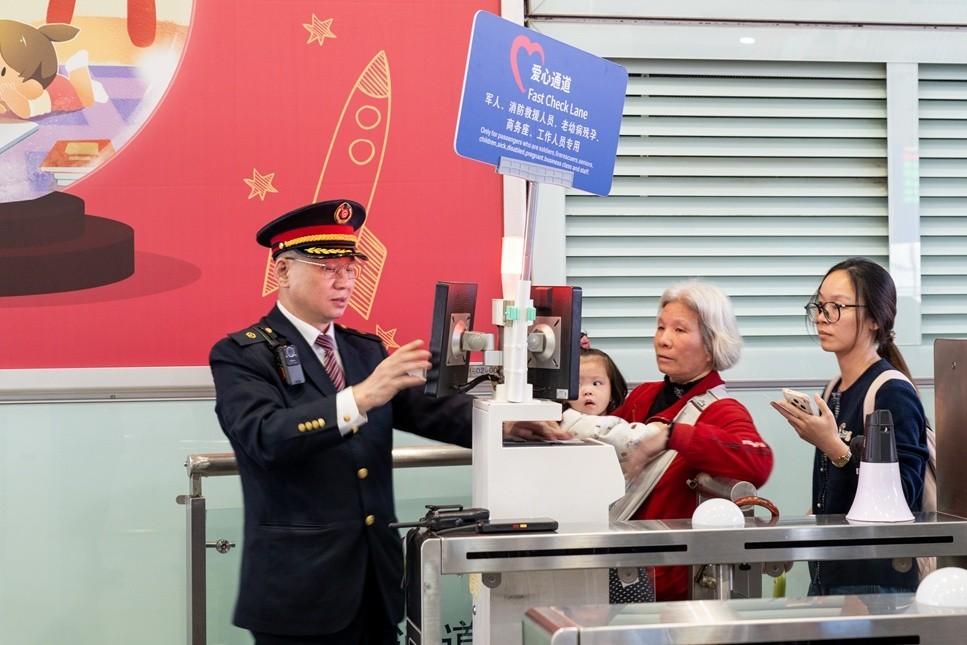 在保障运力的同时,广州南站持续优化服务举措,在一层、三层的候车大屏中新增具体车厢所对应的检票口信息,指引更加清晰,让旅客出行更加便捷。客流高峰期间,最大化启用实名制验证通道72条、安检通道46条,在进站口设置“爱心/急客通道”,为老、幼、病、残、孕等重点旅客以及临近开车的旅客提供优先快速进站服务。在“初心·春澜”党员服务岗、爱心候车区、母婴室等重点区域,每天增派40名青年志愿者,为旅客提供贴心帮助,营造温馨舒适的出行环境。