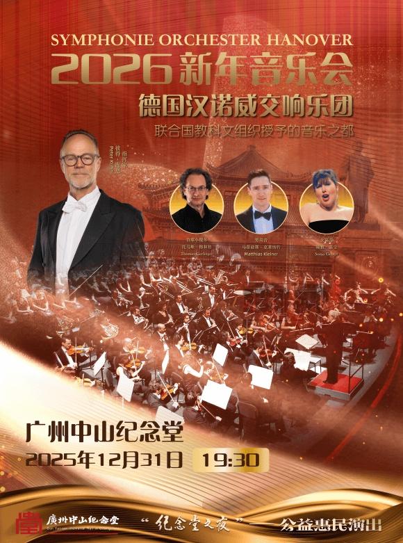 德国汉诺威交响乐团2026跨年新年音乐会将在广州中山纪念堂举办,来自“音乐之都”汉诺威的乐团将以其纯正的德奥交响血统与辉煌的演奏传统,与广州乐迷共同点亮岁末之夜。