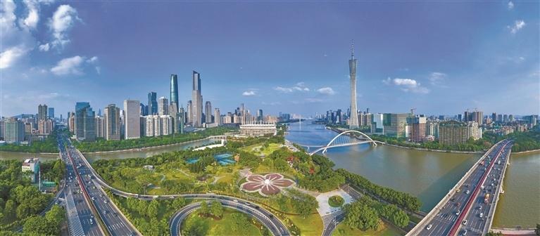 蓝天白云下,广州珠江两岸景色美不胜收。