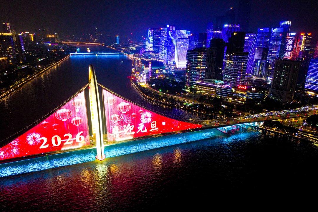 2025年12月28日至2026年1月3日,广州将在广州塔、猎德桥、越秀区沿江路24栋、琶洲西区建筑媒体立面、海珠广场户外屏幕及海印桥网屏等城市重要宣传窗口,呈现“花城启新岁·湾区绘华章”主题跨年灯光秀。