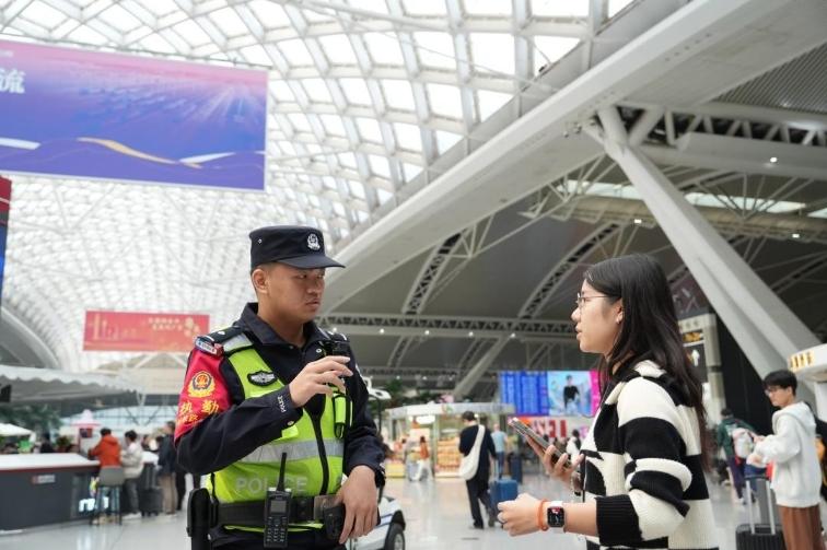 元旦期间,广州铁路警方突出显性用警,坚持“警力跟着客流走”工作理念,深化“网格化”布警,“动态化”巡逻,以定点守与流动巡、徒步巡与驾车巡、民警巡与视频巡等方式相结合,加强辖区治安宣防巡查,提升见警率、管事率。
