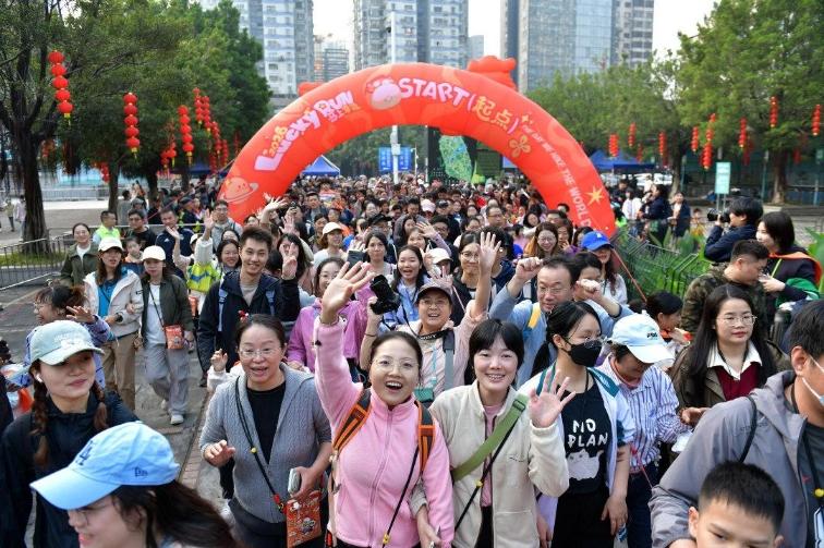 随着鸣笛声响起,近千名参与者从南门起跑,途经新大熊猫馆、飞禽大观南区等2025年新开放场馆,与设特兰矮马、斑马等“马年主角”温暖相遇。3.2公里的赛道上,身着主题披风的孩子化身“小超人”活力冲刺;好友结伴在老虎、斑头雁等“好运打卡点”互动留念;也有不少家庭悠然驻足,细致观察动物百态。